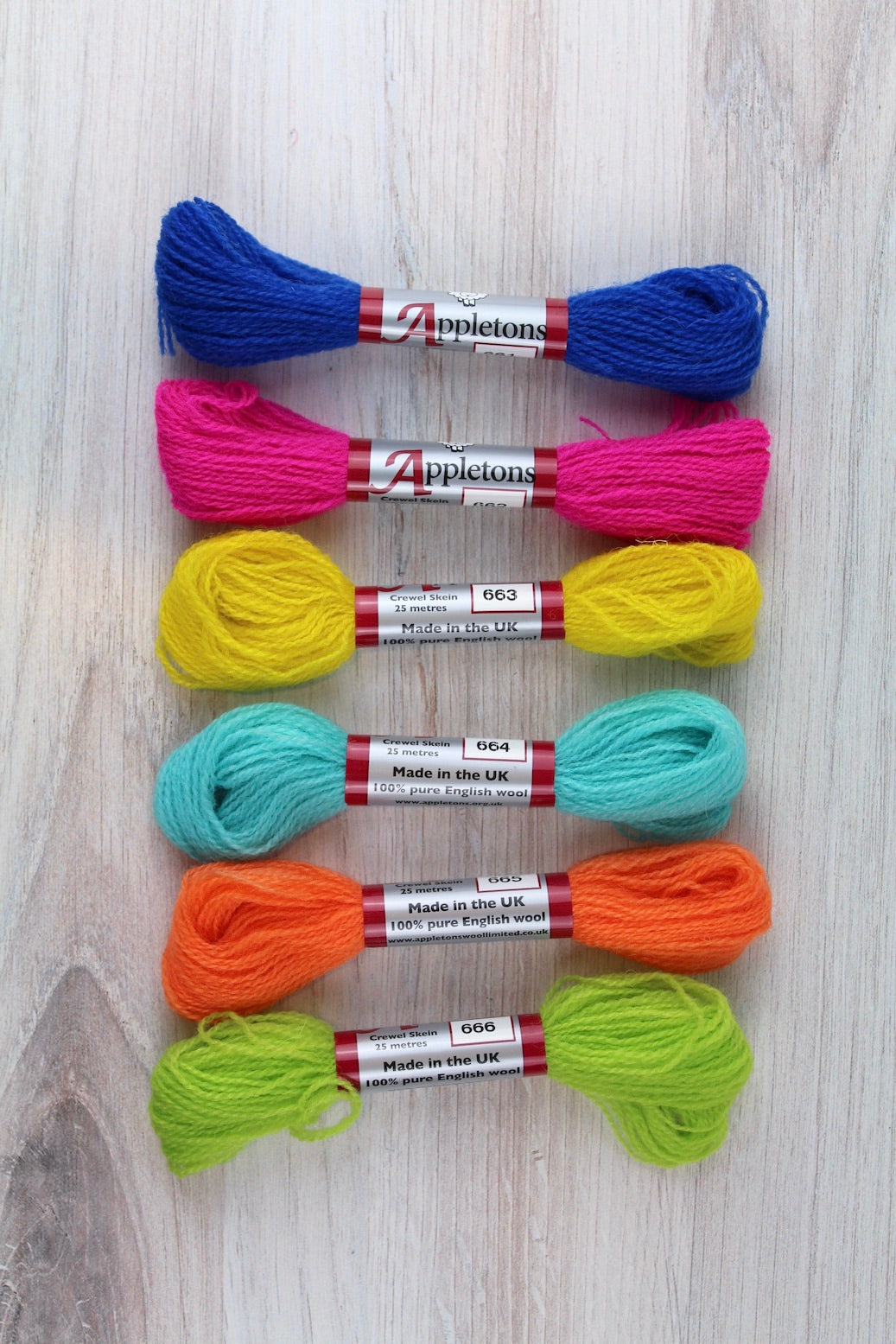 Individual Appletons Crewel Wool Skeins from the Cool Neons Colorway