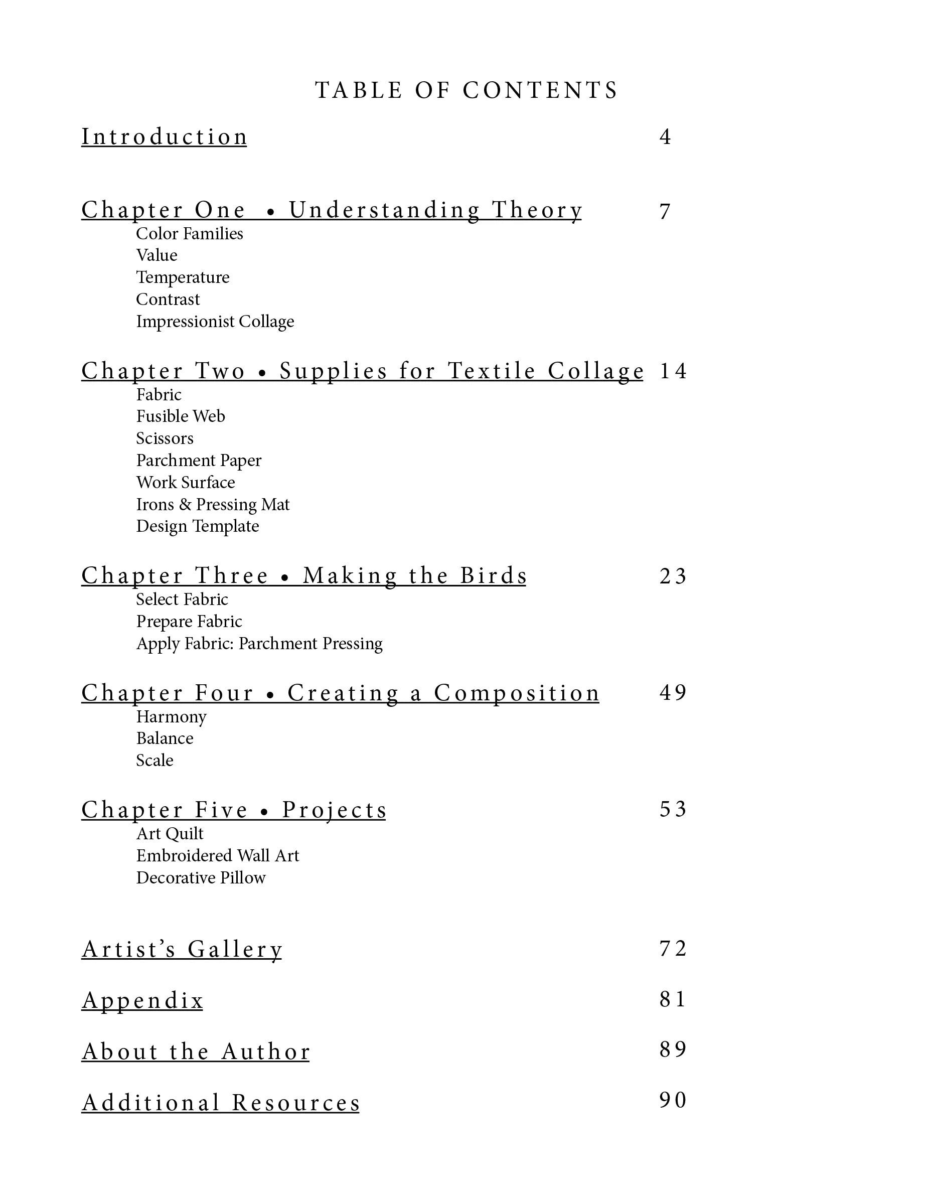 Join Emily Taylor in her journey as a textile collage artist as she walks through the process of making beautiful impressionist collage designs. In this book, Emily provides over 100 Step-by-step photos and illustrations to explain her "Parchment Pressing" technique and other tips for success.